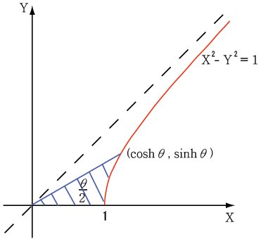 #数楽 続き。すなわち、(x,y)=(cosh t, sinh t)という双曲線x^2-y^2=1のパラメーター表示のパラメーターtは添付画像のθに一致していることが確認できました。添付画像は https://ja.wikipedia.org/wiki/双曲線関数 … より。pic.twitter.com/C7jnYZR3n3