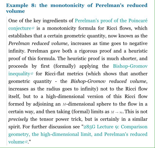 #数楽 添付画像は1つ前に紹介した http://www.tricki.org/article/The_tensor_power_trick … より。私と同じような感じで、ペレルマンさんの方法との類似性を指摘していた。「テンソル冪トリック」は「熱浴」の話の特別な場合とみなせるのだと思う。pic.twitter.com/PrqhSvIuRq
