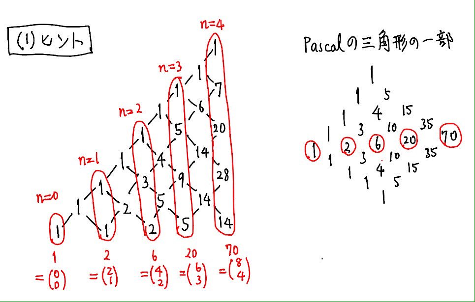 #数楽 問題(1)や反射原理はカタラン数の「格子状の経路の数え上げ」の話と関係があります。https://ja.m.wikipedia.org/wiki/カタラン数 …https://en.m.wikipedia.org/wiki/Catalan_number … のSecond proofに反射原理の詳しい説明があります。