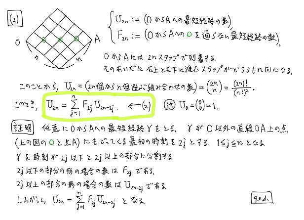 Tのうち途中x>yを通って(m,n)以外の点に至るものをT',x=y>0のある点を通るものをTDとする.TはS,T',TDに分かれる.帰納法の仮定より,R'とT'の間,RDとTDの間に1対1対応がある.証明終.