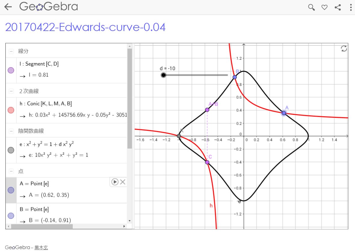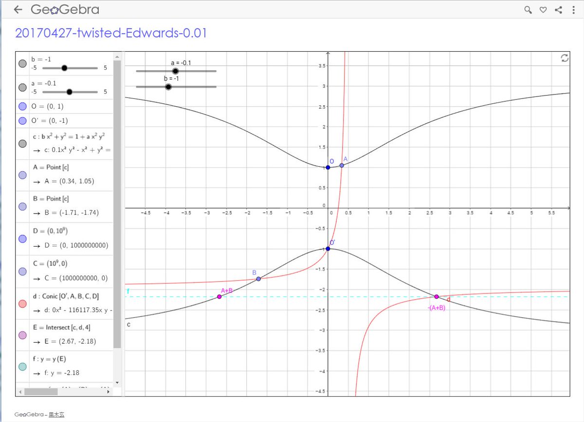 #数楽 "GeoGebraで楕円曲線のEdwards formの加法公式を作図"https://twitter.com/i/moments/855981296782196736 …