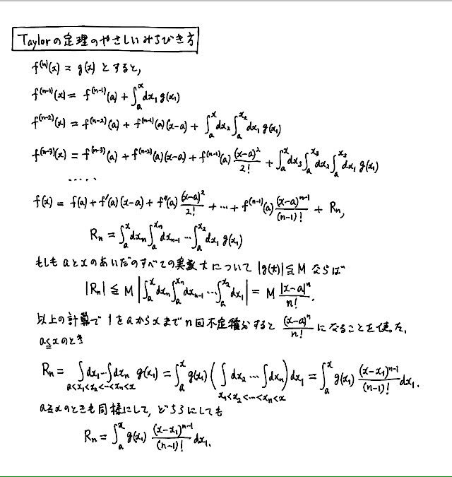 #数楽 "Taylorの定理の易しい証明法" 作成者: